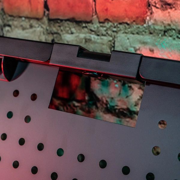 Столешница изготовлена из перфорированного листового металла для обеспечения оптимальной вентиляции оборудования и имеет усиленные стальные распорки для дополнительной прочности. Для удобства работы телескопические ножки можно регулировать под 4 режима высоты, а сам стол можно сложить буквально за несколько секунд поворотом столешницы и откидыванием ножек. Для удобства транспортировки в столе предусмотрена специальная ручка.