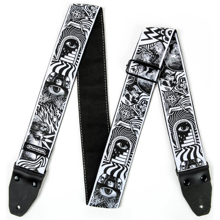Он сделан из комфортной высококачественной жаккардовой ткани и имеет кожаные наконечники. В рамках производства ремень проходит тест, в котором он выдерживал 100-килограммовый вес, так что вы можете не беспокоится о его целостности при использовании даже с самыми тяжелыми инструментами. Дизайн ремня выполнен коллективом британских художников ILOVEDUST, которые в прошлом удостаивались наград за свою работу.