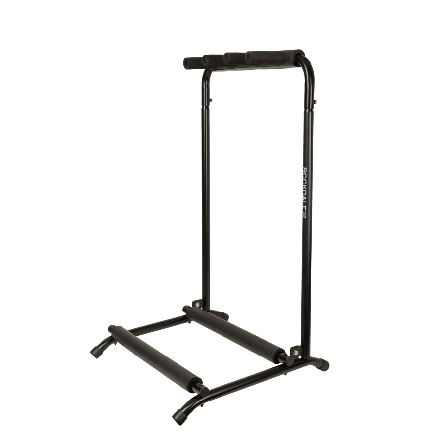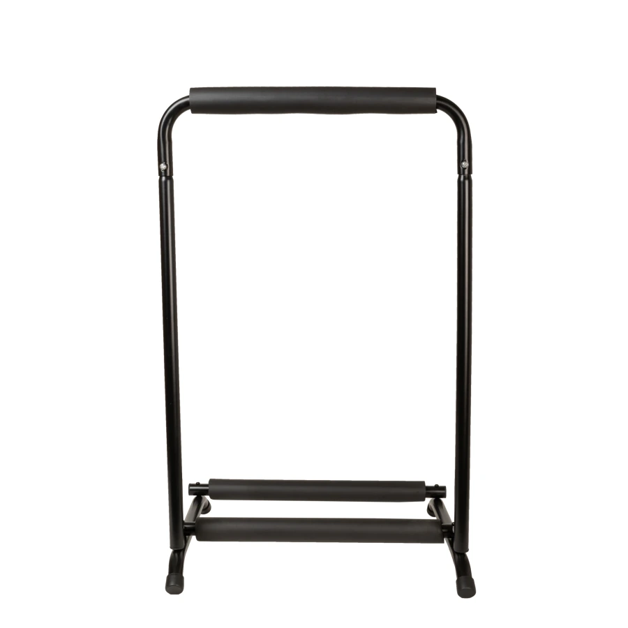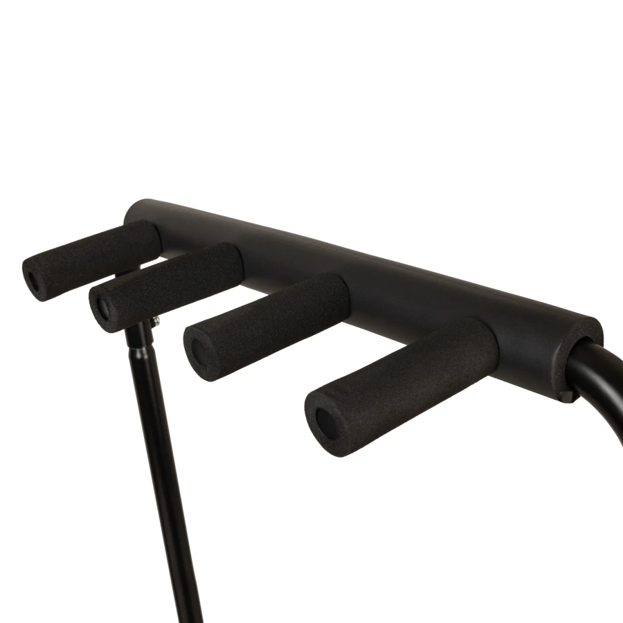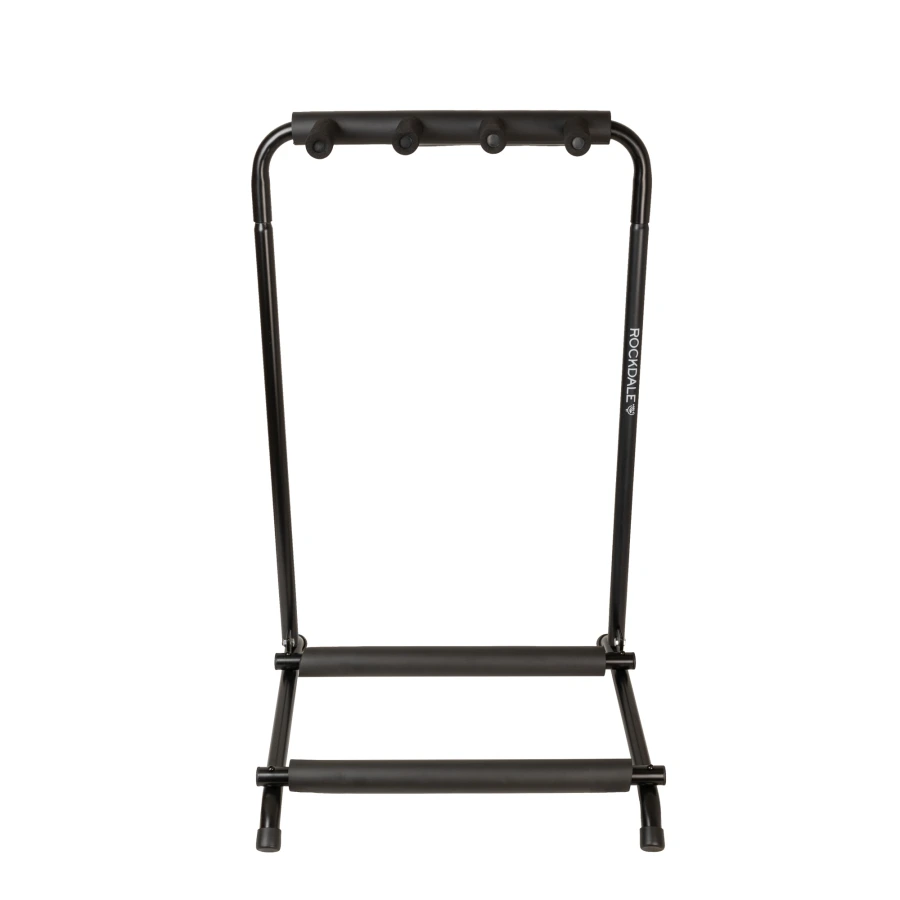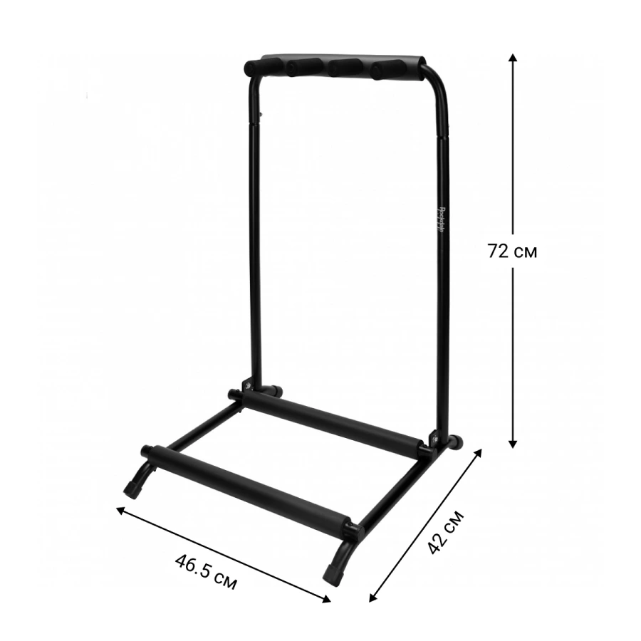 ROCKDALE 34063 - универсальная напольная стойка для трёх гитар с разделителем грифов. Эта универсальная стойка обычно используется для размещения трех электрогитар или бас-гитар на сцене, но также может быть использована в студии, на репетиционной базе или дома. Стойка очень надежная за счет цельнометаллической конструкции. Ножки оснащены специальными противоскользящими резиновыми наконечниками для устойчивости. Для предотвращения возникновения царапин или потертостей в местах соприкосновения деталей стойки с инструментами предусмотрены мягкие накладки, защищающие инструменты от повреждений. Модель представлена в черном цвете.