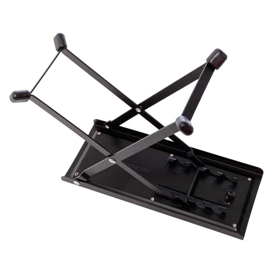 Прочная металлическая конструкция и возможность регулирования в нескольких положениях позволят данному аксессуары стать идеальным решением как для начинающих, так и для продвинутых музыкантов. Ко всему прочему подставка обладает компактной складной конструкцией и легким весом, что позволяет без особых проблем транспортировать ее в гитарном чехле.