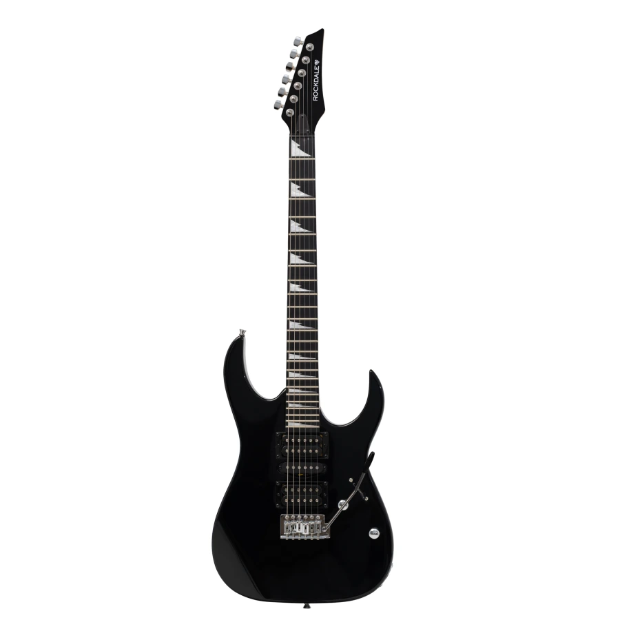 ROCKDALE Akira DX Black электрогитара. Цвет черный. Материал корпуса тополь. Материал грифа клен. Накладка грифа из древесно-полимерного композита. Конфигурация звукоснимателей - HSH. Звукосниматели - Alnico 5. Бридж тремоло. Цвет фурнитуры хром