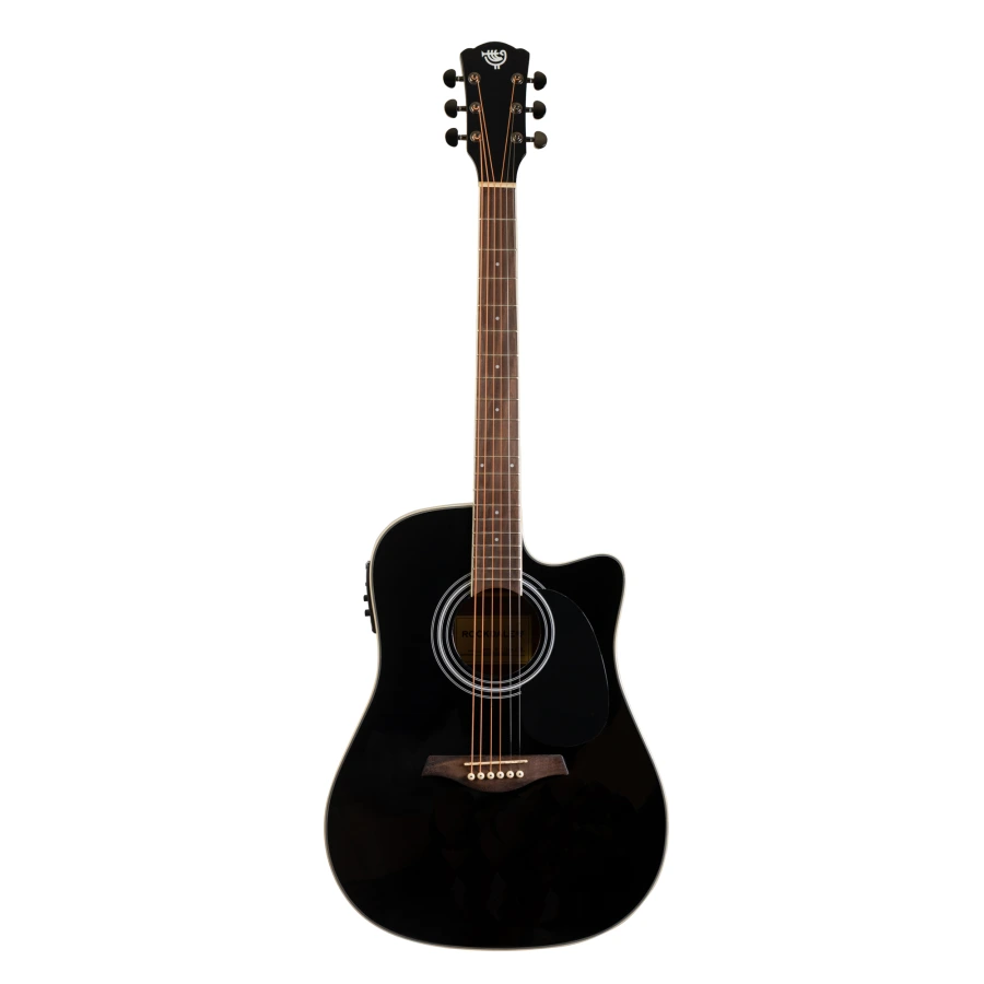 Верхняя дека из ели и корпус из махагони самый распространенный выбор материалов, широко известный своим ярким звучанием и звонким тембром. Форма корпуса дредноут, гриф из махагони, бридж и накладка грифа, выполненные из благородного палисандра все это классические решения, проверенные десятилетиями. Большинство акустических гитар в мире имеют именно такое сочетание материалов. Глянцевое покрытие надежно защищает инструмент от негативного воздействия окружающей среды, придает инструменту стильный и благородный внешний вид, а черный цвет подчеркивает благородный характер инструмента. Сочетание отличного звука, надежности в эксплуатации и качества материалов, делают гитару ROCKDALE Aurora D6 C BK E Gloss превосходным выбором для гитариста любого уровня.