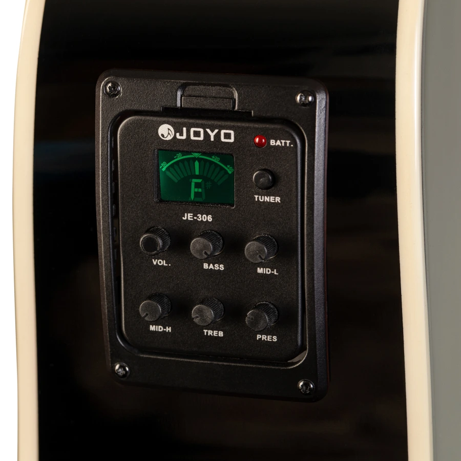 Возможность подключения к усилителю или звуковой карте: встроенный звукосниматель JOYO-JE306 позволяет подключать гитару к усилителю или звуковой карте и регулировать тембр звучания гитары в акустических системах самостоятельно. Для возможности управления звуком на темброблоке имеется эквалайзер, с помощью которого Вы можете регулировать громкость отдельных частот. Это незаменимая опция при работе на студии или на концерте, но даже если Вы только учитесь и просто занимаетесь дома, возможность записать ваше звучание для анализа исполнения отличная возможность быстрее нарабатывать навыки.
