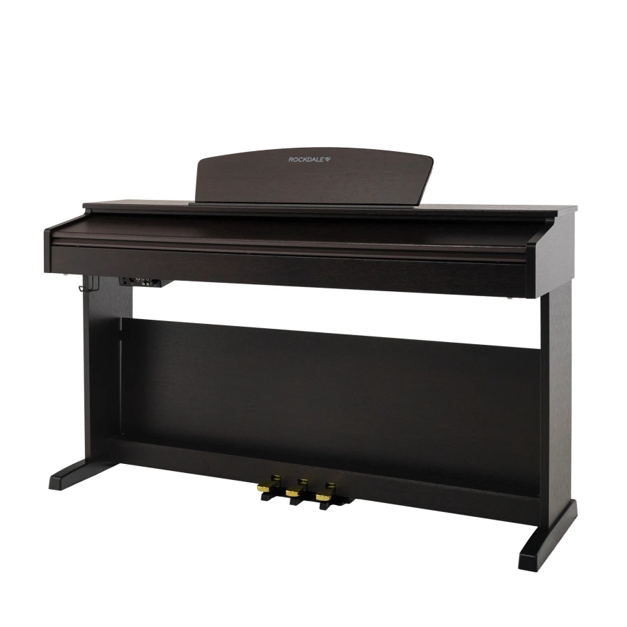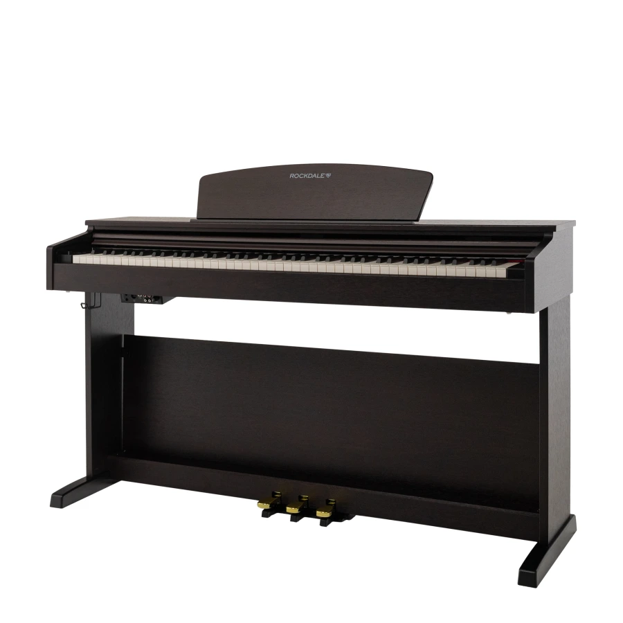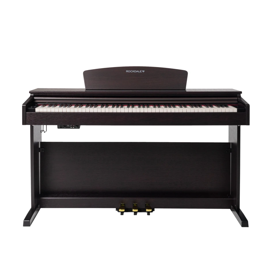 ROCKDALE Etude 128 Rosewood современное корпусное цифровое фортепиано с внушительной функциональностью и полноразмерной молоточковой клавиатурой, которое является полноценной заменой акустическому инструменту. Сочетание передовых технологий с элегантным классическим дизайном. Инструмент идеально подходит для обучения и совершенствования своих навыков игры на фортепиано.