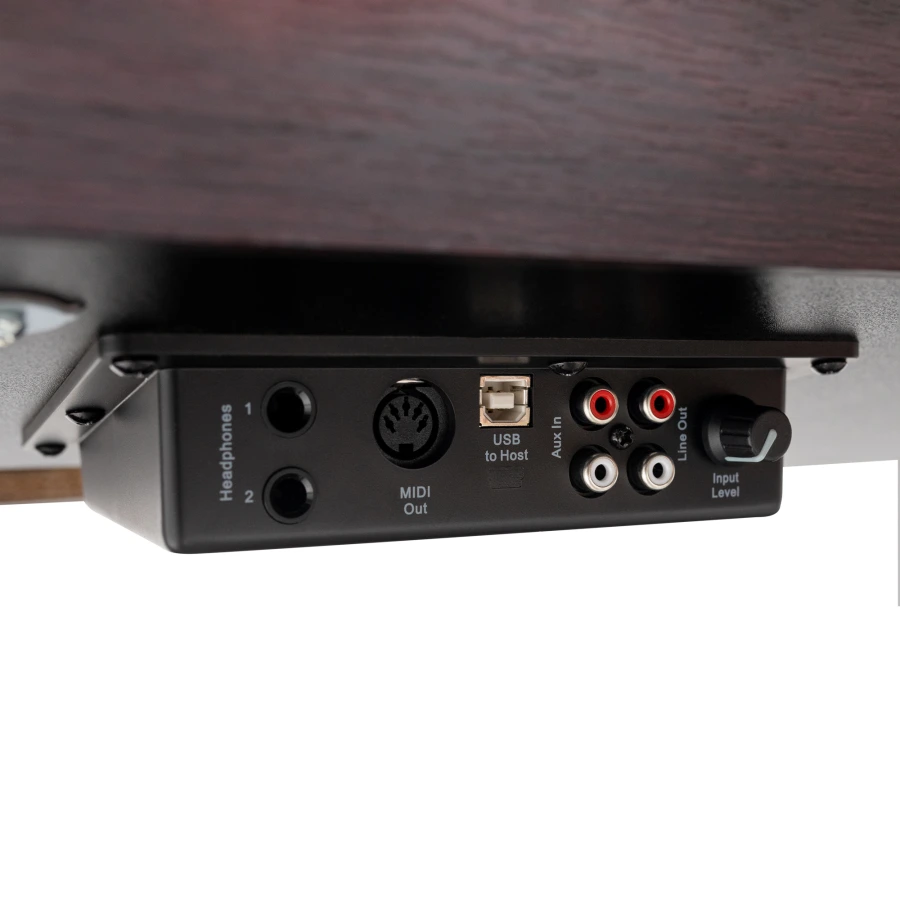 Аудио вход и аудио выход: дает возможность подключать фортепиано к внешней акустике, или использовать инструмент в качестве аудиосистемы.