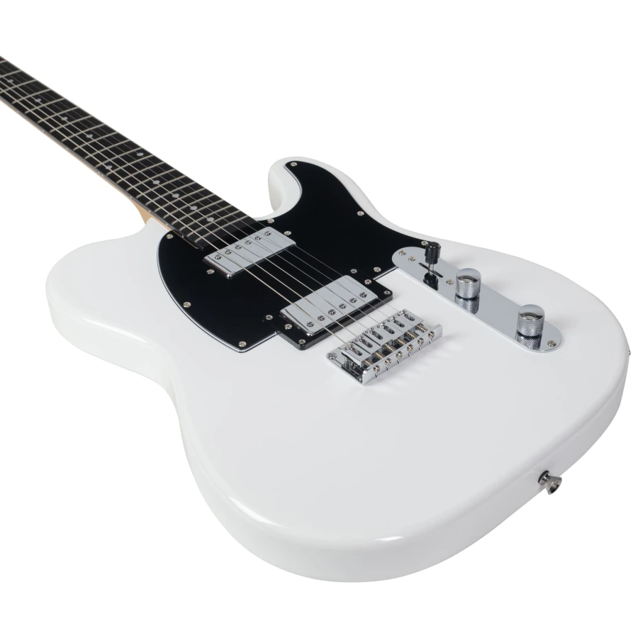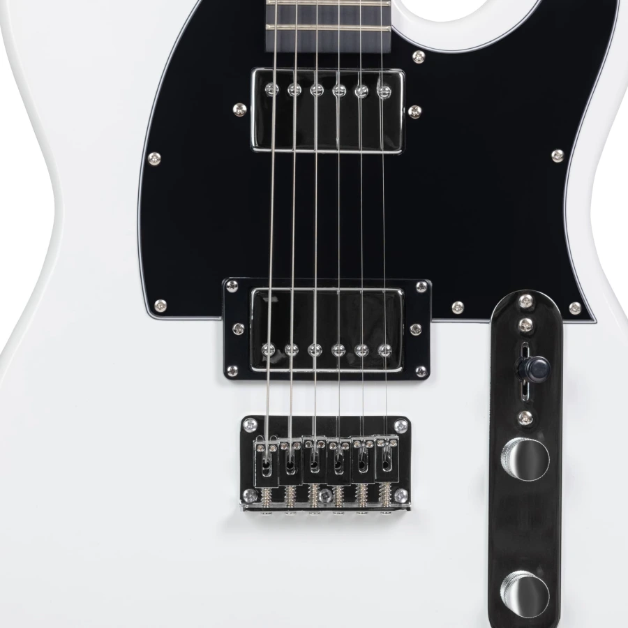 Электрогитара ROCKDALE Stars TЕ HH White имеет классическую форму и концепцию Tele, хорошо знакомую любителям музыки, однако благодаря конфигурации звукоснимателей HH (два мощных хамбакера) прекрасно раскрывает себя в области тяжелого и плотного звука. Если вам нравится стиль и удобство телекастера, но при этом ваша душа просит мощного и перегруженного звучания эта гитара как раз для вас. Еще одной отличительной особенностью данного инструмента является фиксированный бридж (хардтэйл), отличающийся повышенной надежностью, удобством, возможностью настраивать высоту и мензуру каждой струны и улучшенным резонансом.