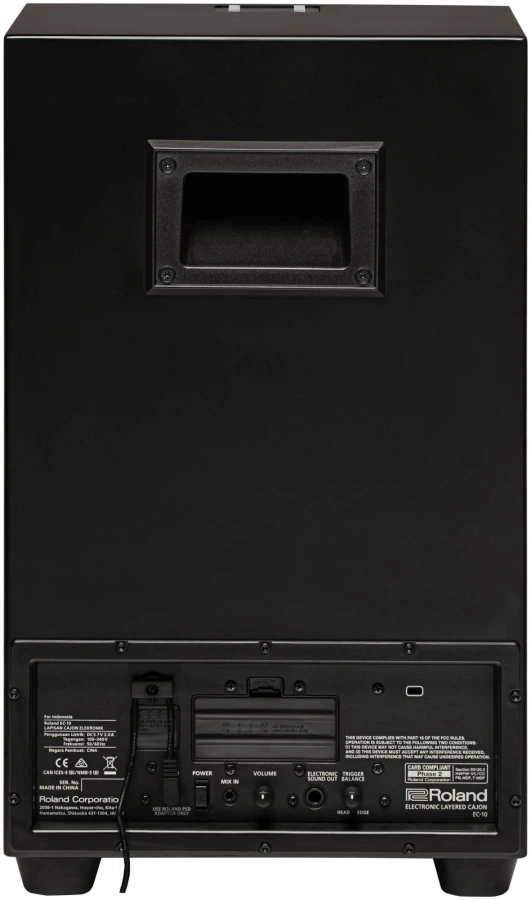 Roland EC-10 - электро-кахон является уникальным, универсальным инструментом, который сочетает в себе подлинный акустический Cajon с электронными технологиями перкуссии, что позволяет смешивать ряд дополнительных электронных звуков с голосом Cajon. От традиционных ударных инструментов, таких как тамбурин и шейкер, акустические силки, электронные барабаны, звуковые эффекты и многое другое, ЕС-10 позволяет Cajon-игрокам легко увеличить их музыку с слоистыми электронными звуками.