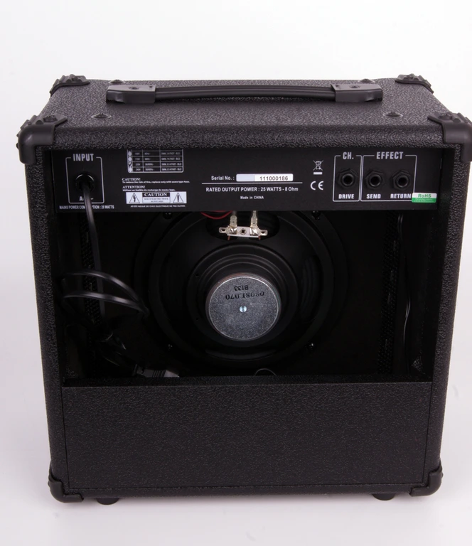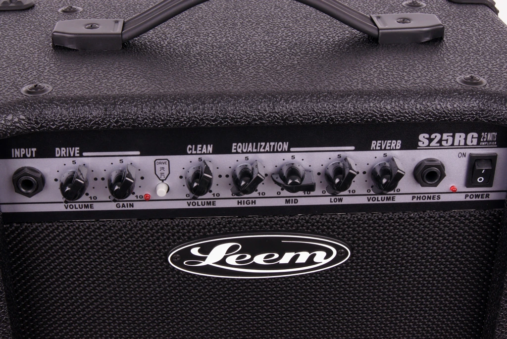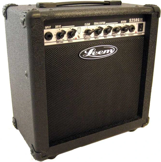 S25RG Комбик гитарный 25Вт c реверберацией LEEM. Профессиональная аудиоаппаратура небытового назначения. Мощность 25Вт, динамик 8", Передняя панель: 1 вход, регулировка усиления, громкости, громкости усиления, реверберации, 3-хполосный эквалайзер, выход на наушники, выключатель питания, Задняя панель: разъем подключения педали, выходы IN/OUT, размеры 353х340х200мм LEEM