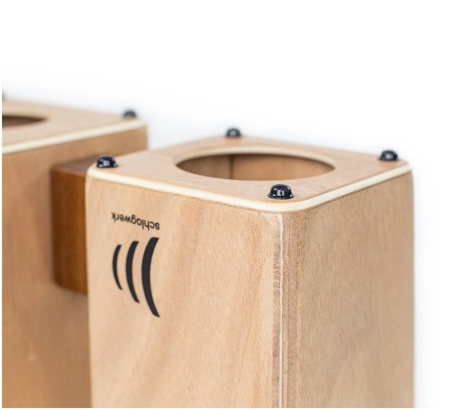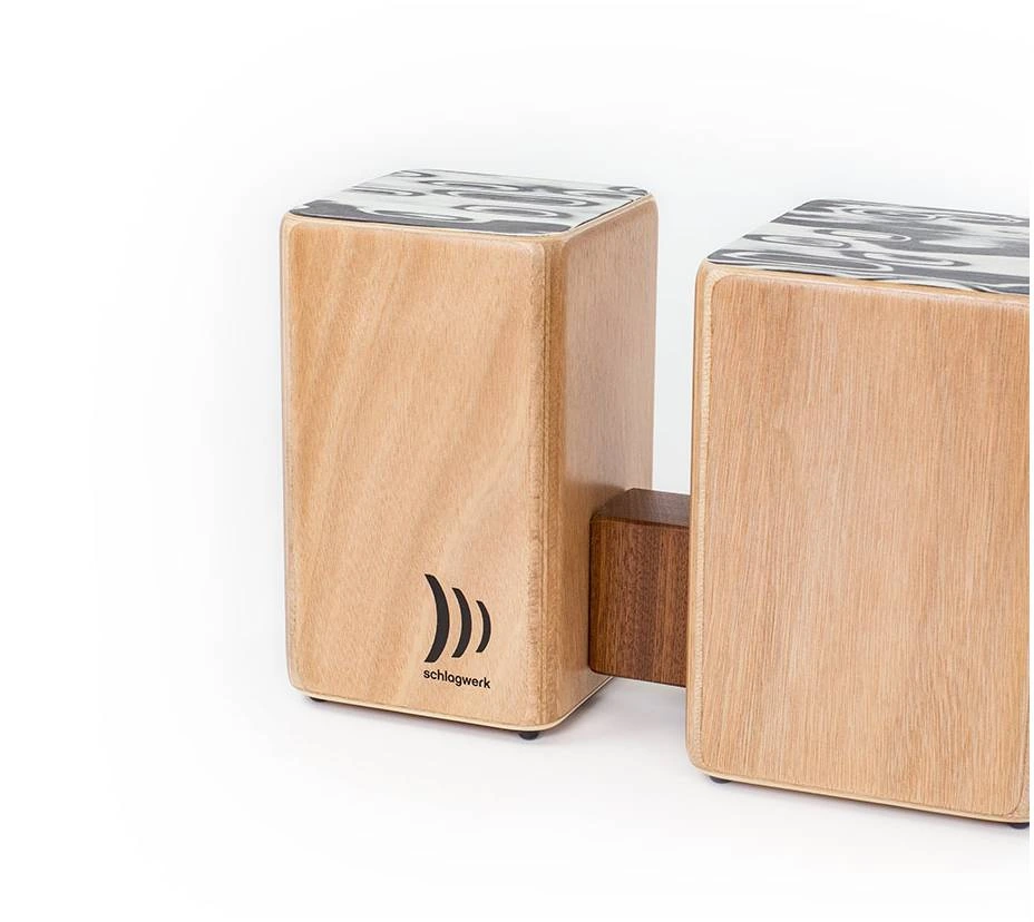 Деревянные бонго Schlagwerk WBM100 — это уникальное сочетание кахона и бонгосета. Деревянные бонго позволяют использовать те же техники игры руками и пальцами, что и для «обычных» бонго. Музыкант получает теплый, но сильный и характерный звук на Hembra (большем из двух барабанов) — в то время как Macho вступает в игру соло. В отличие от кожаных инструментов, деревянные бонго не подвержены влиянию погоды, не требуют настройки и, кроме того, являются хорошей альтернативой обычным наборам бонго.