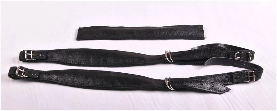 Комплект кожаных ремней для детского баяна. Заплечные ремни: длина max - 100 см., min - 70 см. Левый ремень : длинна 39 см