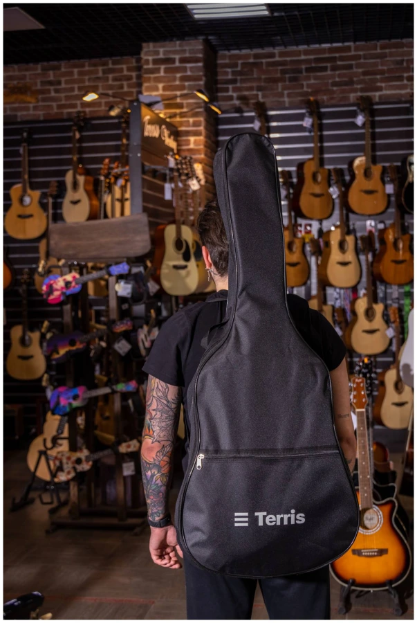 Чехол для акустической гитары TERRIS TGB-A-01 BK изготовлен из плотной синтетической ткани. Специальная конструкция этой ткани обеспечивает прочность, износостойкость изделию и придает ему водоотталкивающее свойство.