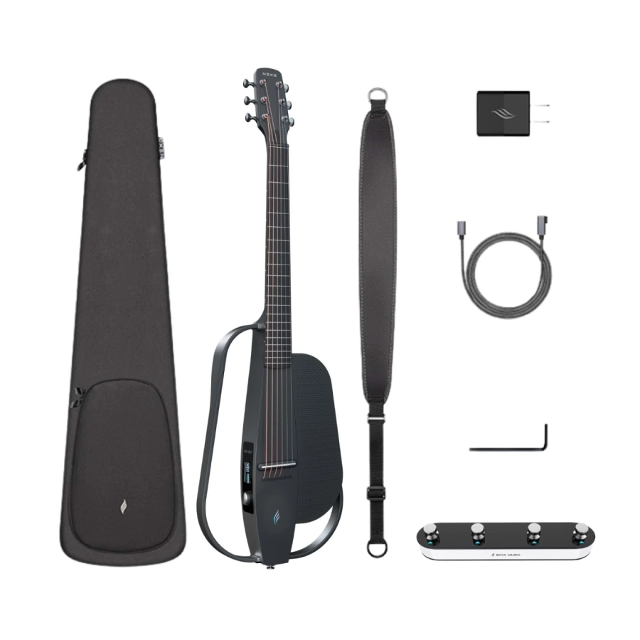 NEXG® 2 Black — это 38-дюймовая гитара с продвинутыми встроенными функциями, такими как лупер, встроенные эффекты, ударные биты и возможность настройки через приложение. В отличие от обычной версии, модель Silent предоставляет уникальную возможность играть без звука из динамика, что идеально подходит для практики в любых условиях. Все необходимые аксессуары включены в комплект: чехол, ремень и наушники.