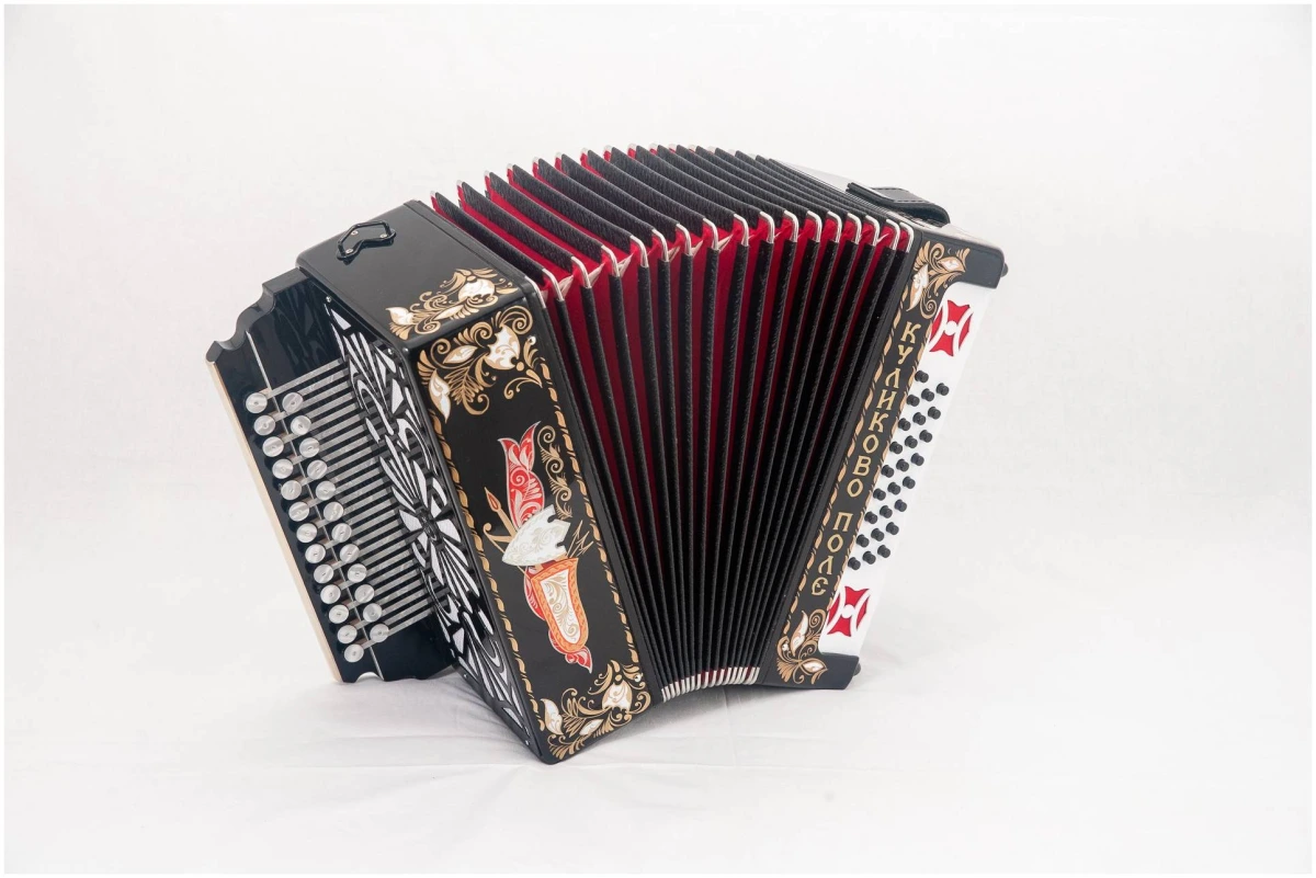 Гармонь «Куликово Поле» (модель Г-3) 3-х голосная , 2-х рядная - это модернизированная модель Тульская гармони 301М. Её отличия — иной гриф, деревянная (более мягкая) клавиатура.
