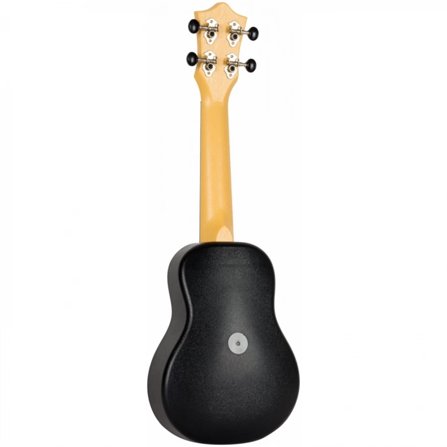 Яркий и насыщенный звук достигается благодаря особенностям конструкции - корпус укулеле сделан из технологичного композитного материала и имеет особую полукруглую форму, а резонирующая верхняя дека сделана из древесины - махагони.