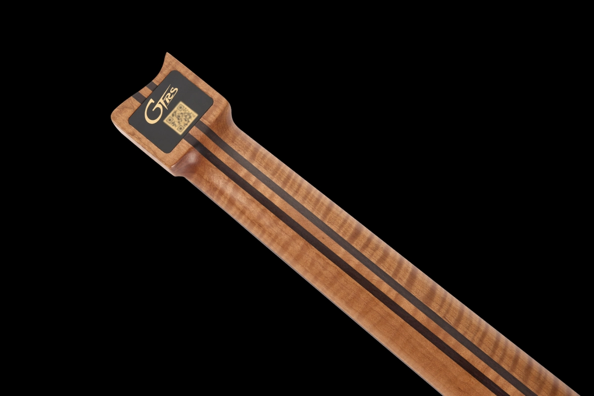 Что касается древесины, GTRS выбрали для W902 корпус из ольхи, дополненный восхитительным цветом Magic Crystal и глянцевой отделкой. Гриф C-образной формы, состоящий из пяти частей, изготовленных из отборного обожженного волнистого клёна и палисандра, крепится болтами. Гриф имеет матовую отделку, накладку из палисандра и инкрустирован белыми точками. Стальной анкерный стержень двойного действия проходит через гриф, увенчанный костяным порожком, и 24 веерными ладами из белой меди (0 лад из нержавеющей стали).