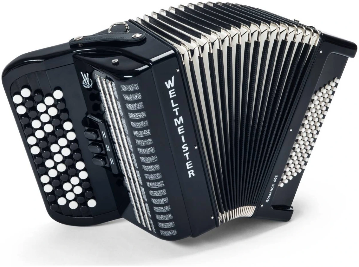 Баян WELTMEISTER Romance 602, несмотря на небольшой размер корпуса, предлагает широкий диапазон звучания из 36 тонов в дискант. 5-рядная клавиатура позволяет плавную и приятную игру по всей клавиатуре. Стандартная механика может быть увеличена до 96 басов, что говорит о высоком качестве инструмента. Таким образом, этот баян хорошо подходит не только для обучения в музыкальной школе, но из-за своего маленького веса очень популярен в компании, походе или на сцене. Ремни и футляр в комплекте.