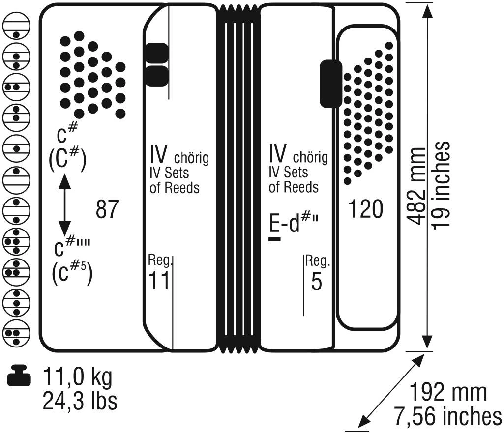 - 4 голоса в дискант с 11 регистрами